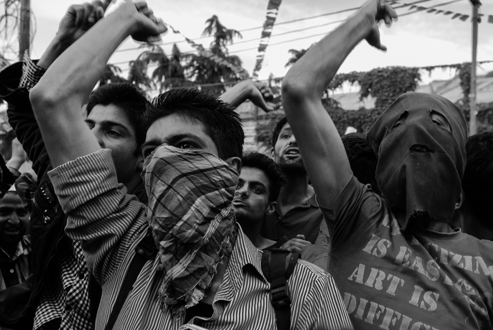 Friday afternoon. The prayer is just ended and the devotees turn away from Jamia Masjiid, the main mosque in Srinagar, the summer capital of the state Jammu and Kashmir. The Indian army troops are deployed at the entrances and observe the young boys covering their faces among the crowd. The kanijung - local name of the stone-throwing - is about to begin. Within a few minutes the air becomes unbreathable. Numerous stun grenades explodes. From the shadows amid the clouds of tear gas raises a voice: "what do we want?". Hundreds of shadows answer vehemently: "azadi! azadi! "-"Freedom! Freedom! ": the main slogan of the kashmiri separatism. The message is delivered to the Indian invaders along with a shower of stones every friday afternoon. The young stone throwers grew up during the 90s, when an armed insurgency against the indian government was bloodily suppressed by the army. They witnessed brutal violence since they opened their eyes, therefore in the heart of this generation there is no doubt: : India is carrying out an unlawful occupation, only possible thanks to the 600.000 troops that make Kashmir one of the most militarized zone in the world. In the summer of 2016, the anger erupted again because of the death of Burhan Wani, the popular commander of a separatist armed group, killed by indian troops. A new season of protests, repression and martyrs ended without concrete results but with 90 dead and thousands injured. In Srinagar, disillusionment is in the air; new tombstones fill the graveyards and fighting with the stones seems no longer enough. Burhan Wani has become a central symbol of kashmiri struggle and now many young boys are ready to follow his path. Despite this fresh anger, sixty-eight years ago in Kashmir began an endless winter of suffering for the people who now lives in the hope of seeing one day flourishing the spring of azadi.
