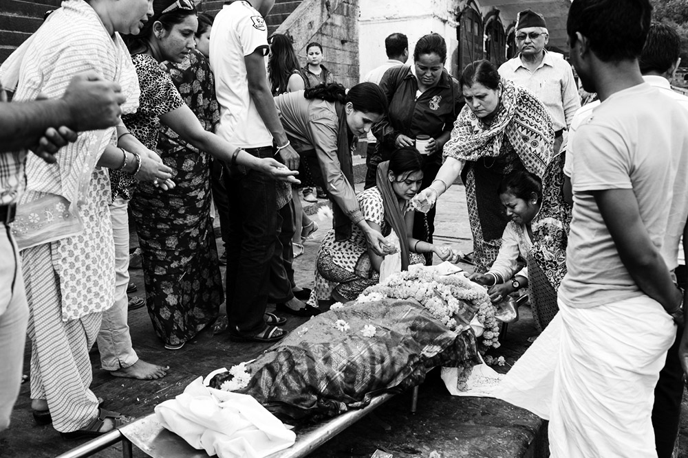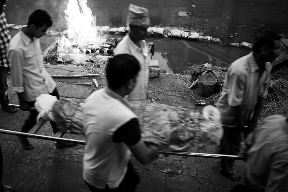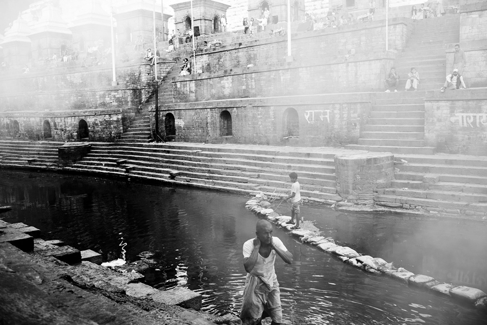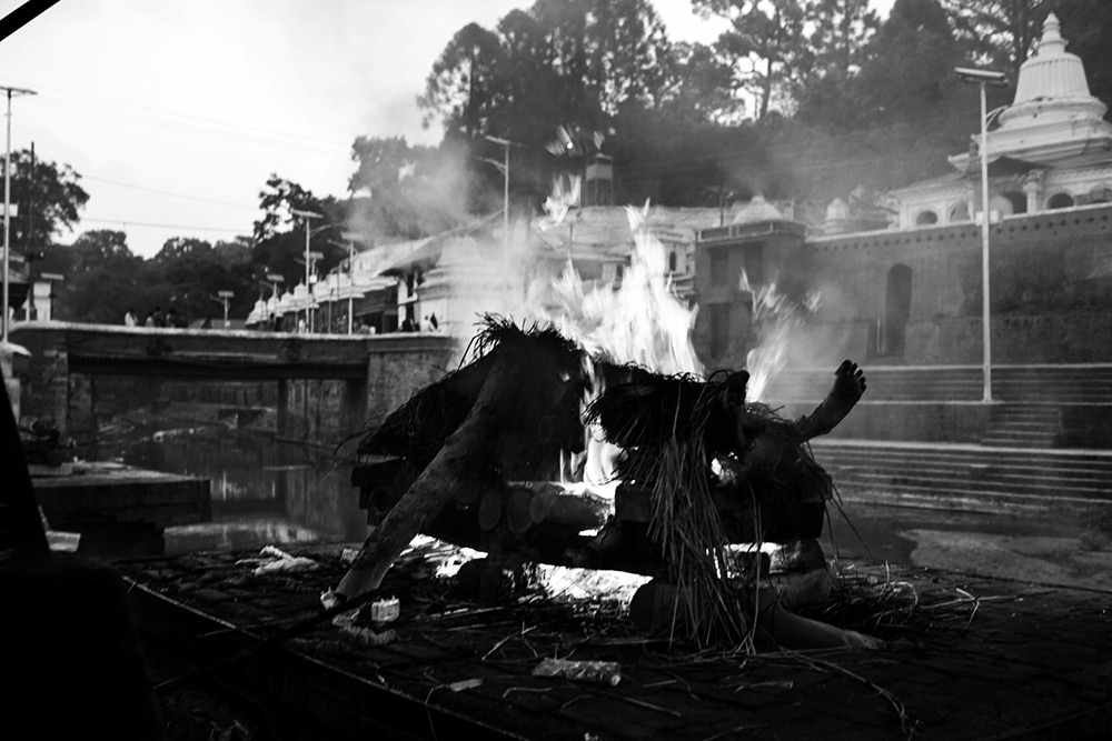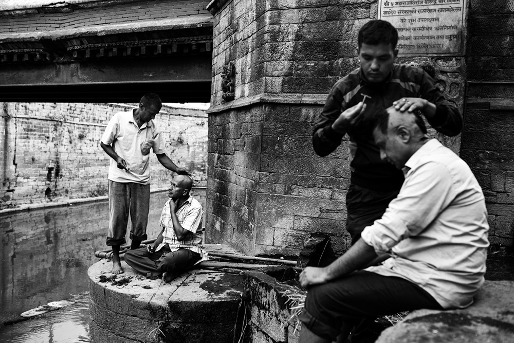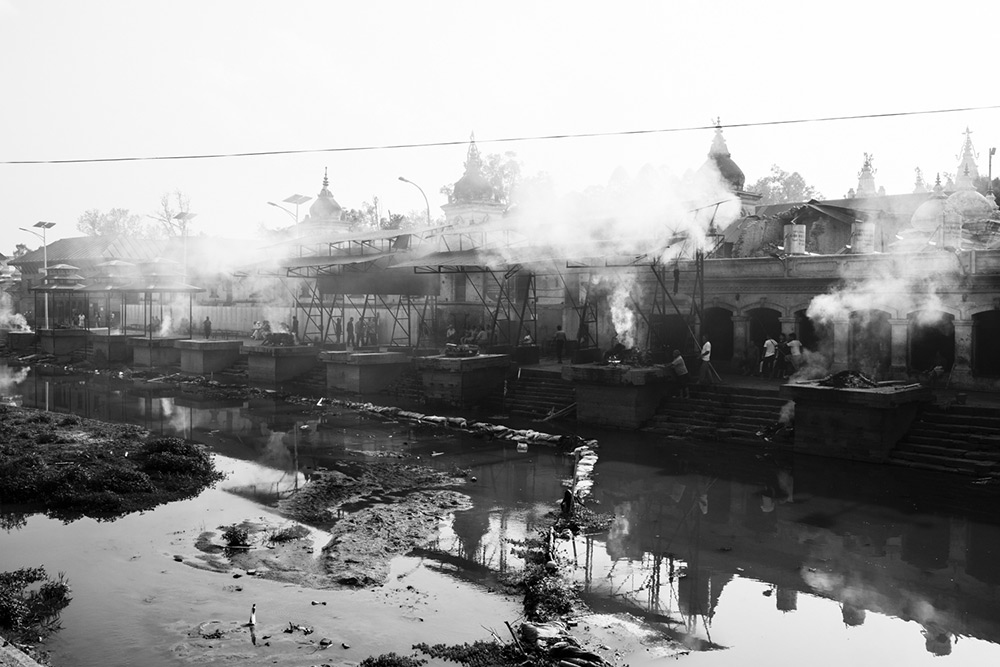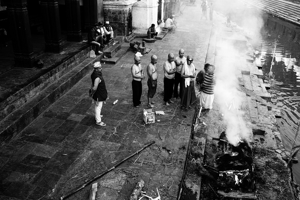 Located on the banks of the Bagmati River in Kathmandu, Nepal is the Pashupatinath temple – considered one of the sacred temples of Hindu faith. Family, friends and the public gather to mourn the dead, witnessing the burning of the deceased on the pyres. With many maintaining traditional practices; from the shaving of male heads, ritualistic blessings and rinsing, to bringing the dying to the volunteer run hospital located alongside the ghats for what Hindu’s consider to be their last rite of passage.