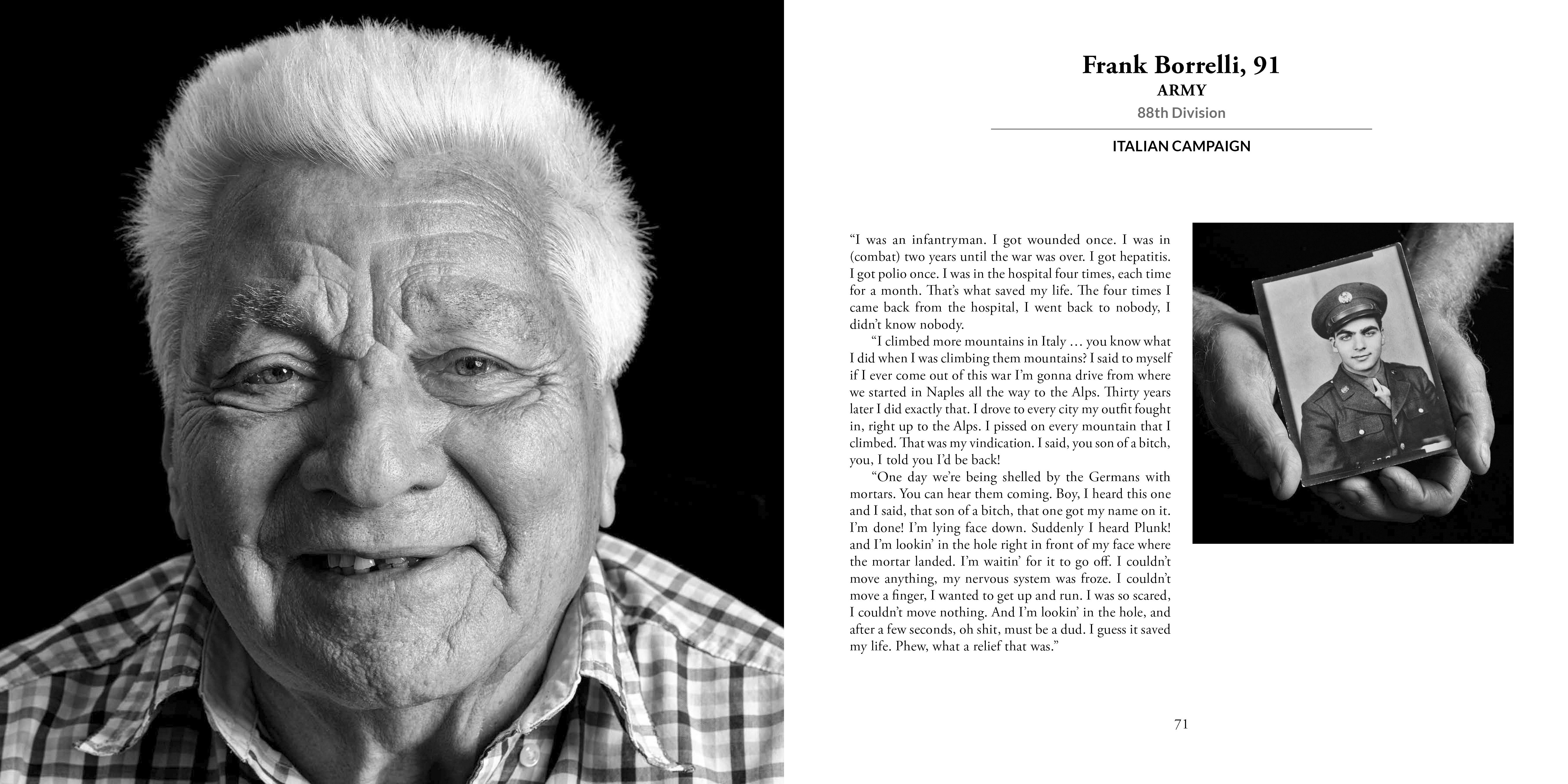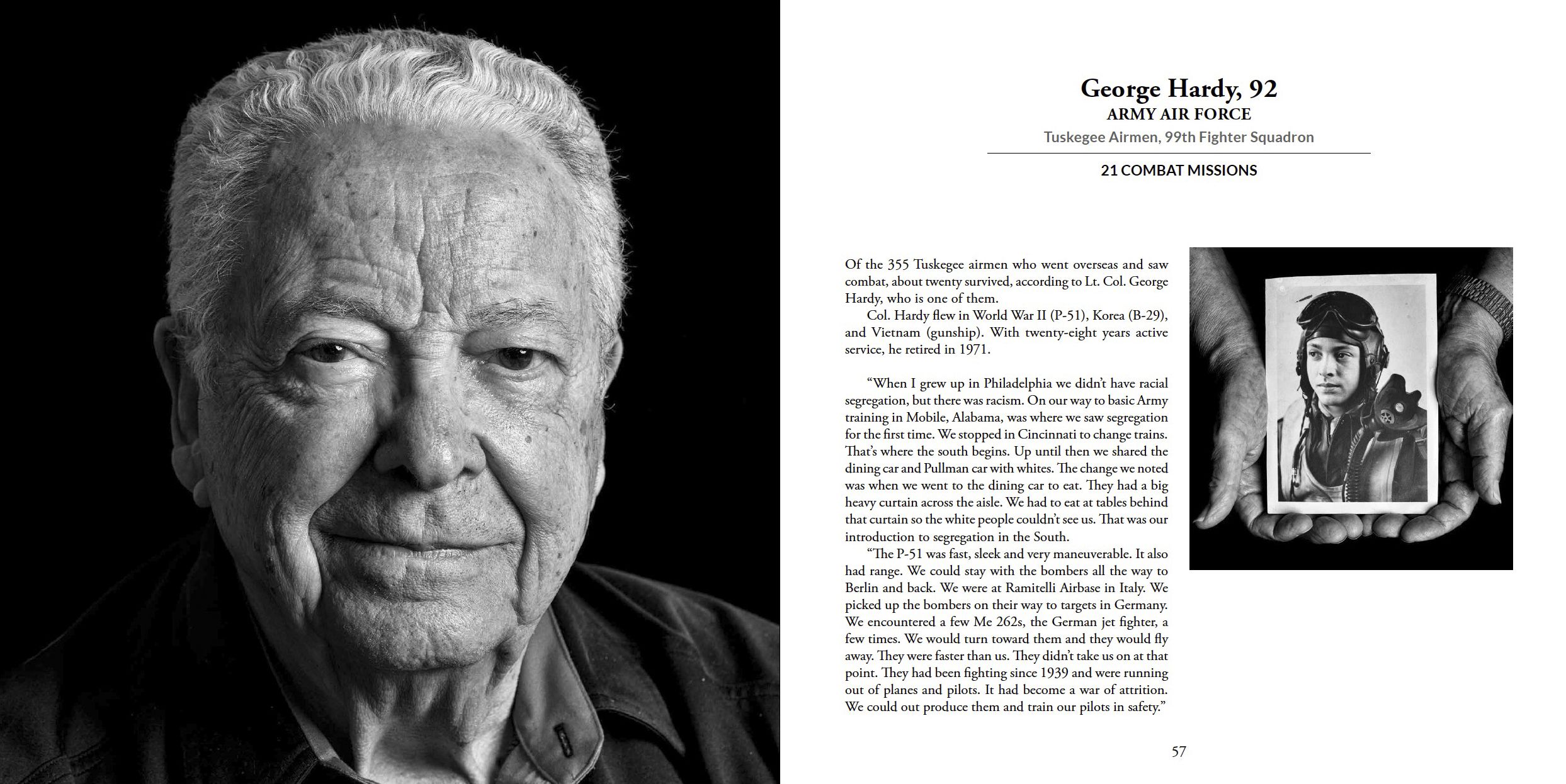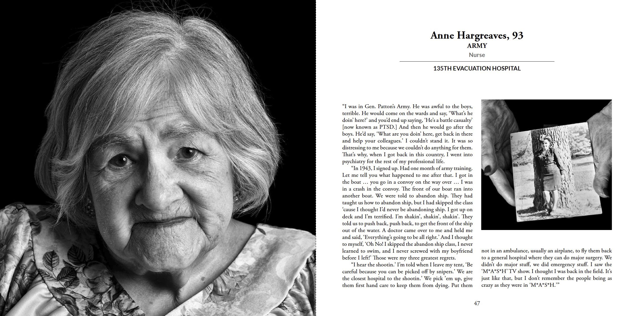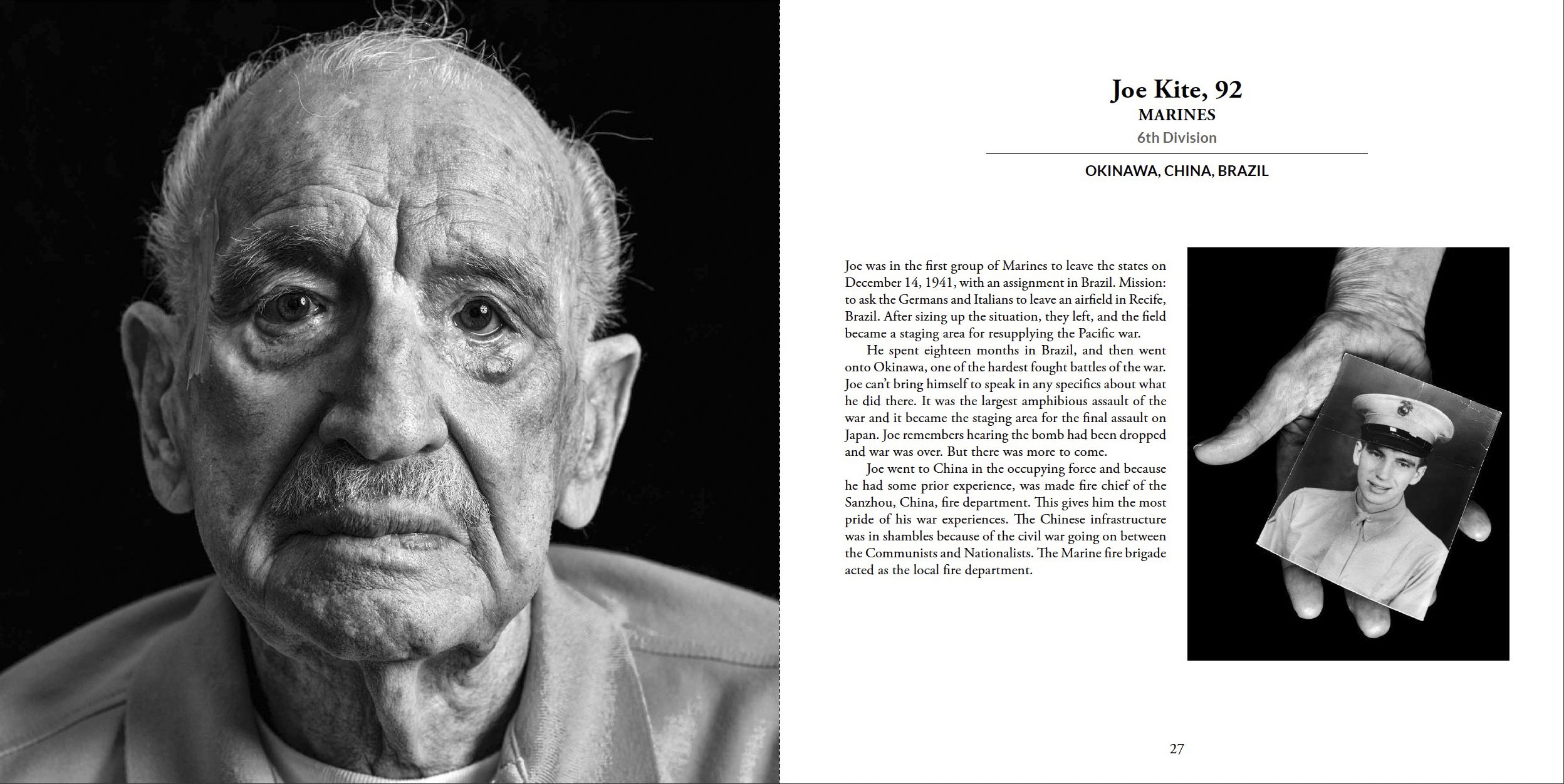 This book chronicles the many faces of the WWII effort with contemporary black-and-white portraits of the longest surviving veterans. The book includes a collection of Americans from all walks of life. The faces of these veterans, from all branches, are juxtaposed with images of their youthful selves and serve as a visual representation of the expanse of their life experiences. This collection is a testament to diversity and the spirit of patriotism of a collective American effort.