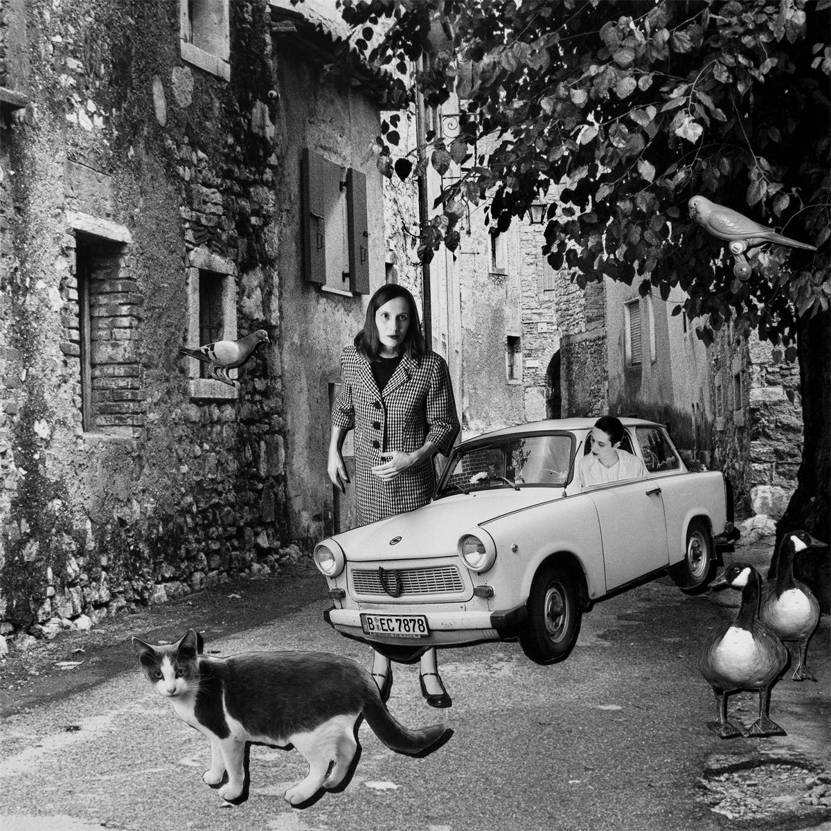 Over the years I have become interested in hand made photo-collages and photomontages and their potential for creating powerful spaces. The photo-collages are constructed out of a combination of pigment and gelatin silver prints, with imagery originating from various sources including the artist’s studio practice. These images are combined with recent photographs of travels in Europe, the patriarchal home in Switzerland and other family artifacts. All of the elements combined create seemingly whimsical narratives that take the viewer on a journey through the artist’s fictionalized world.