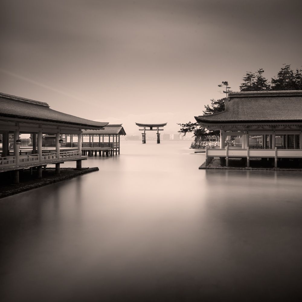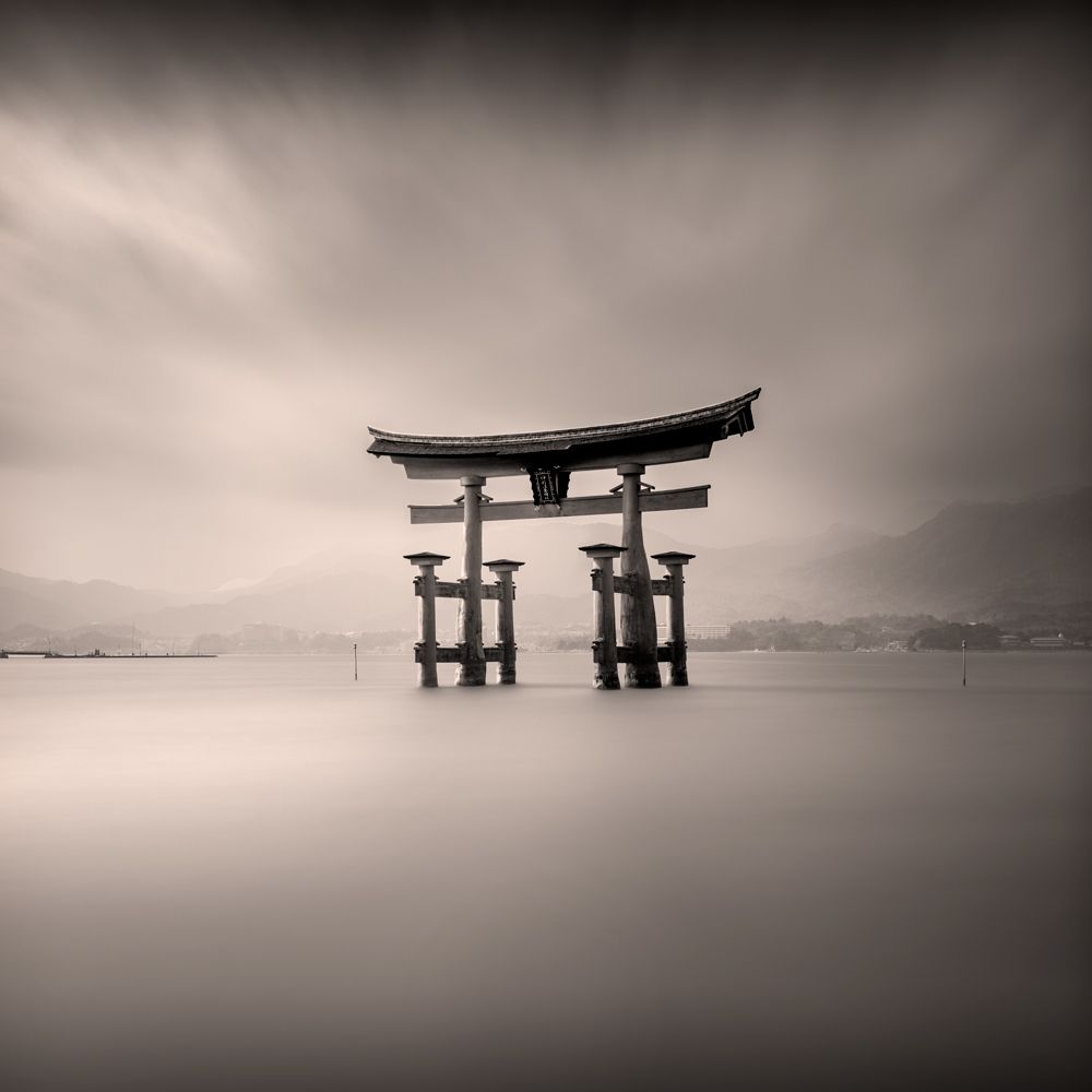 Spiritual Japan Long exposure photography delivers the enchanting spirit of sacred traditions of Japan. When the never ending colorful crowds of tourists and pilgrims alike turn into the moving ghosts in the long exposure photograph, serenity and piety fills the air. Monochrome delivers the message of timelessness. Slightly warmer tone is homage to sepia film and accentuates the timelessness of ancient Torii gates and Temples