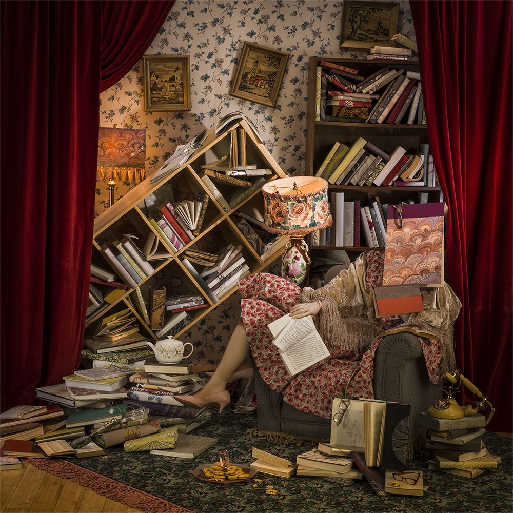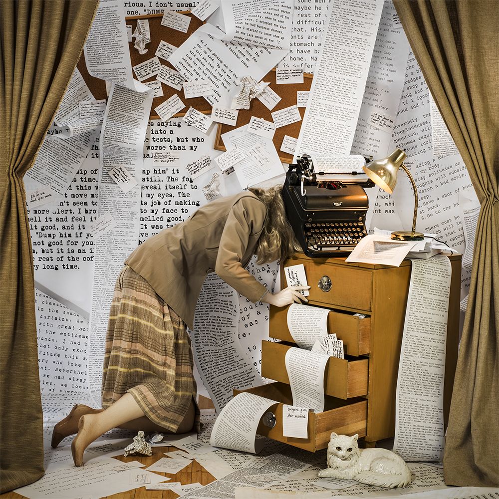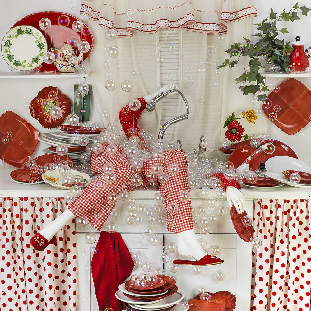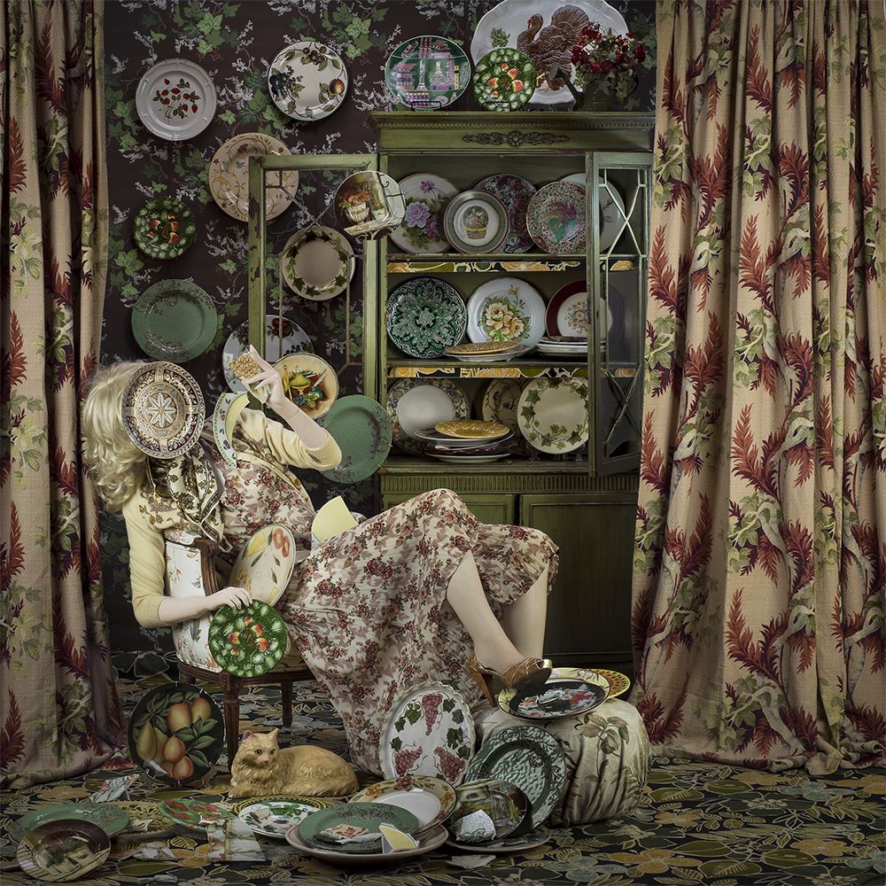 Patty Carroll has been known for her use of highly intense, saturated color photographs since the 1970’s. Her most recent project, “Anonymous Women,” consists of a 4-part series of studio installations made for the camera, addressing women and their complicated relationships with domesticity. After teaching photography for many years, Carroll has enthusiastically returned to the studio to delight viewers with her playful critique of home and excess.