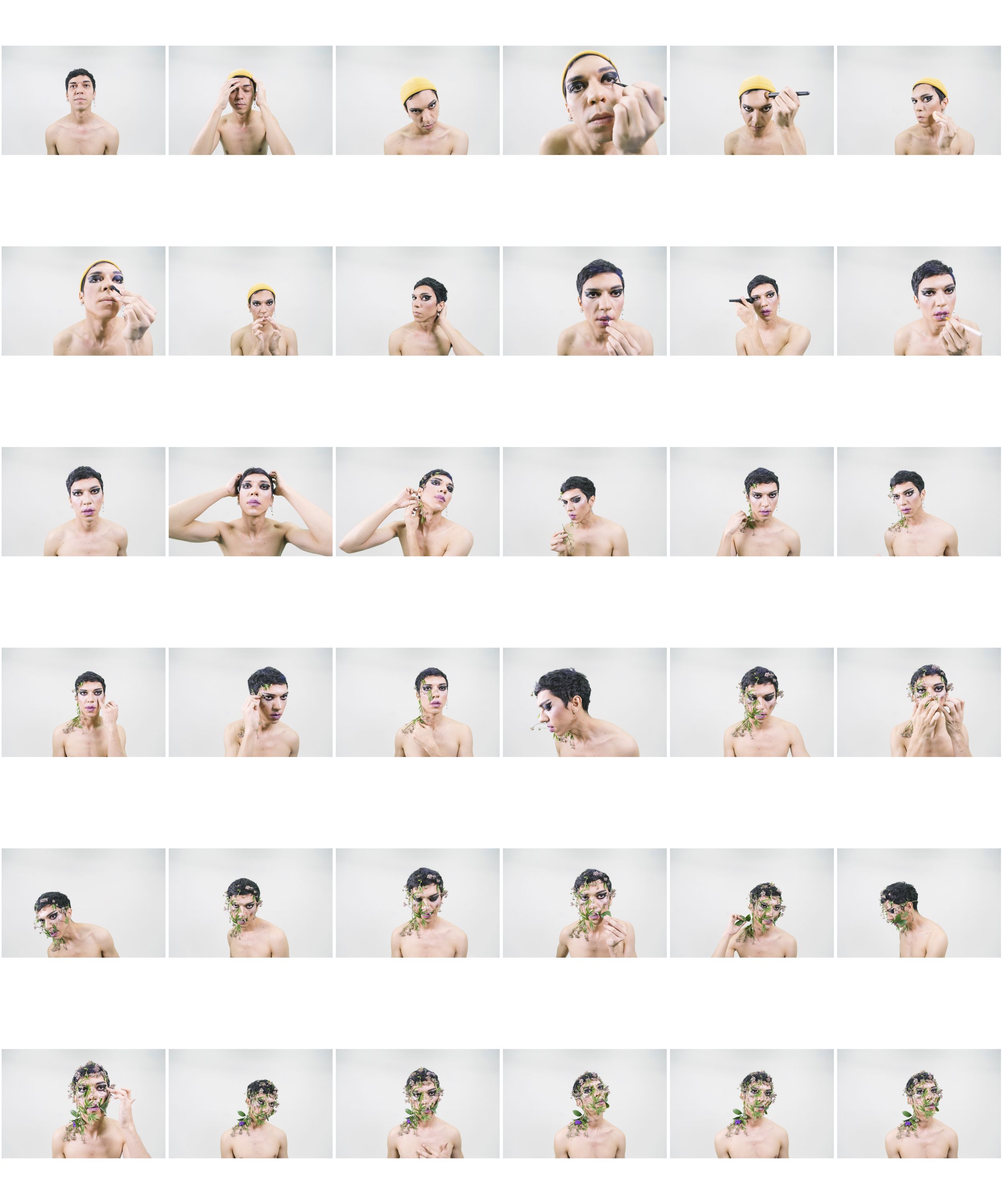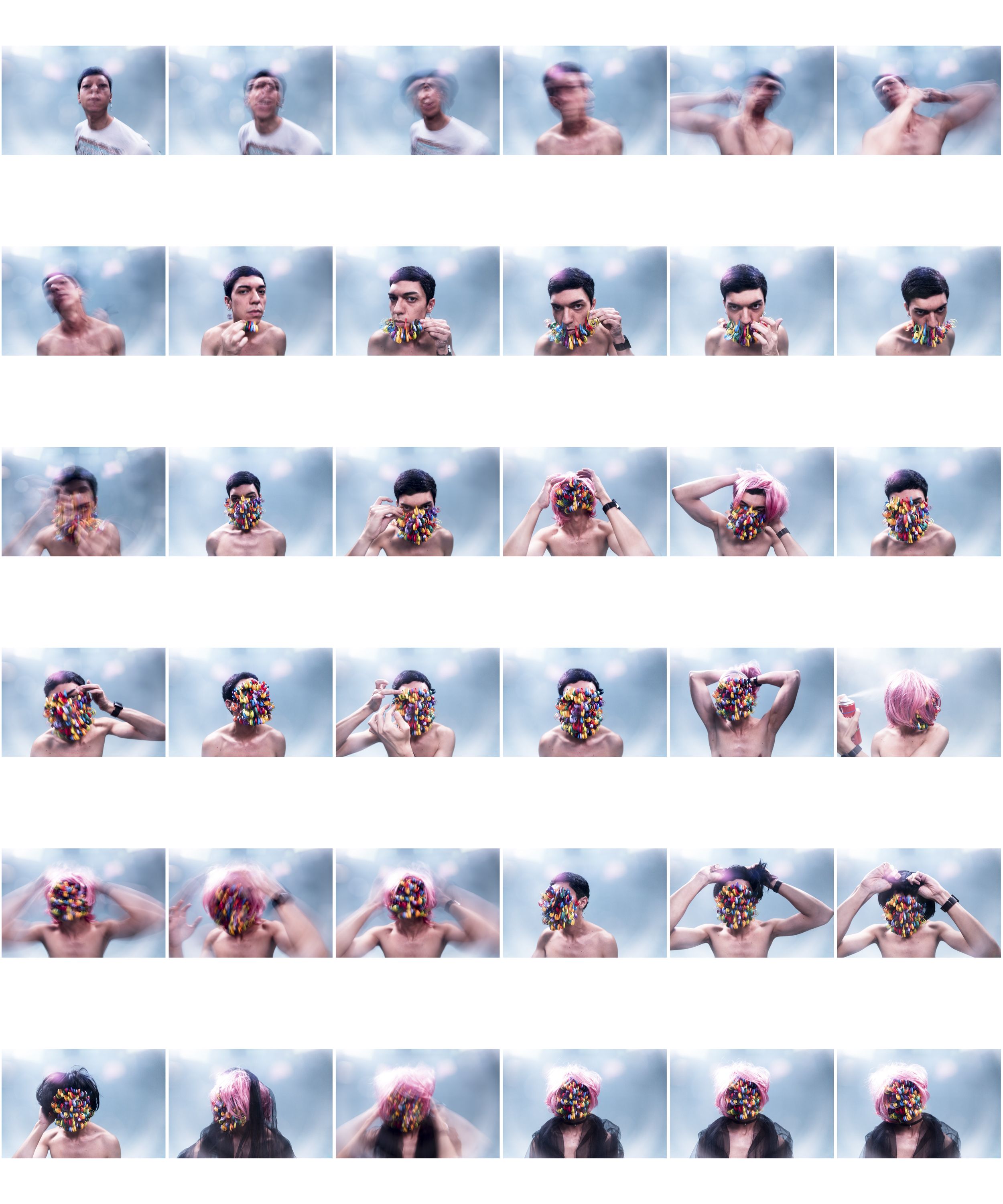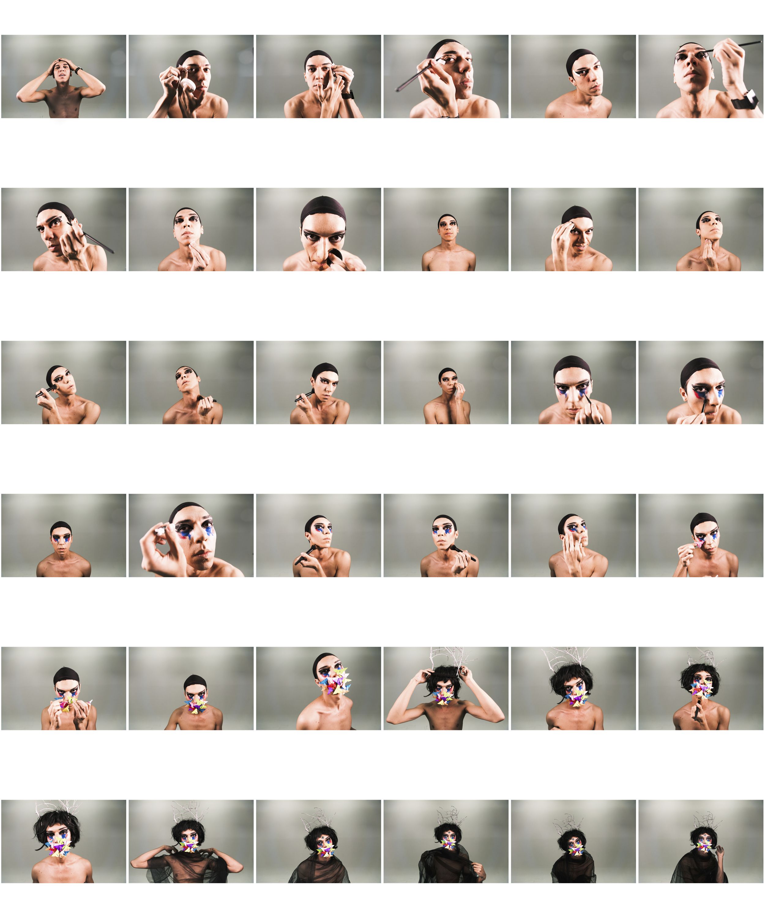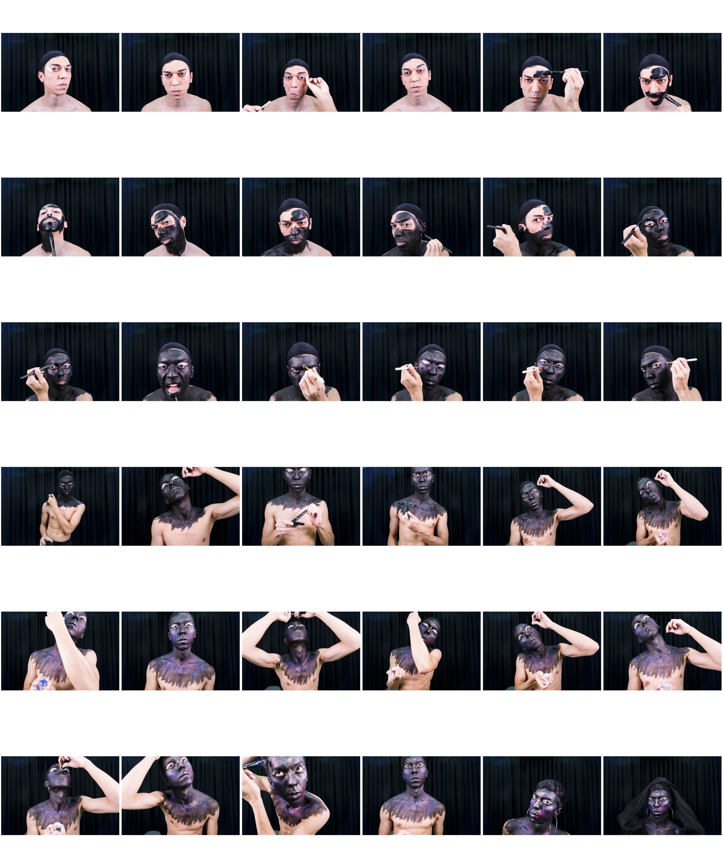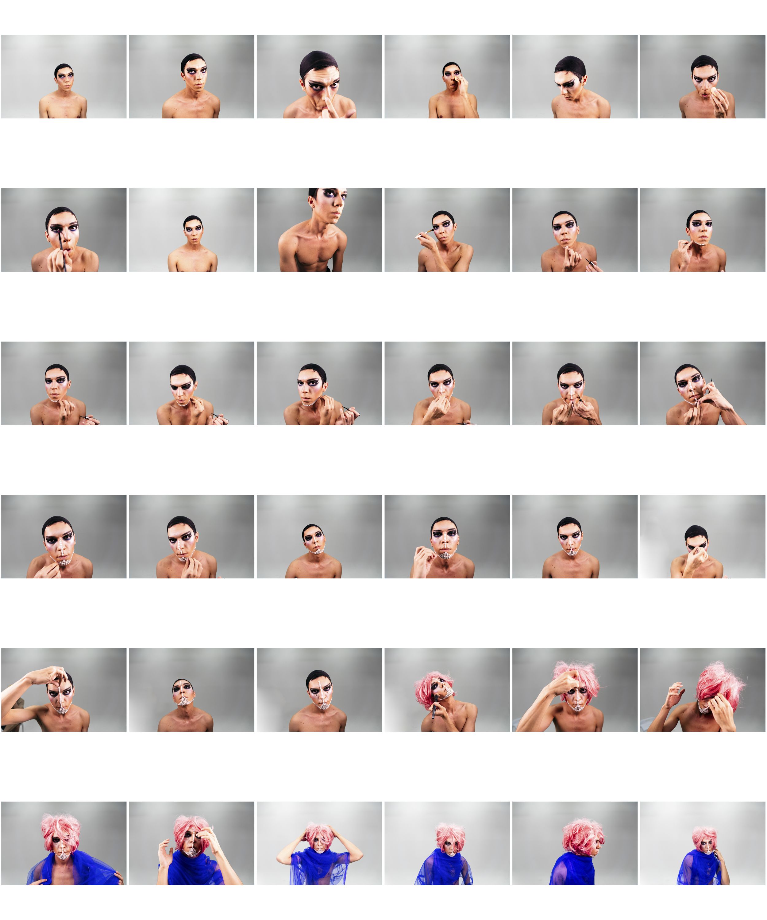 Artist Note is included between images with name of “Trace 3” “Trace 2” “Trace 1”. You can read them in random order or not. www.gibsonkim.com/nada Basically, Performer Nix wore make up looking at the one-way mirror which I can peep through and observe Nix’s movement behind it. I documented nix’s movement and identified them as I want confessing my voyeurism. Nix was against me expressing their identity for the best on the other side of mirror. This series of work ‘Nada’ is output from our collision.
