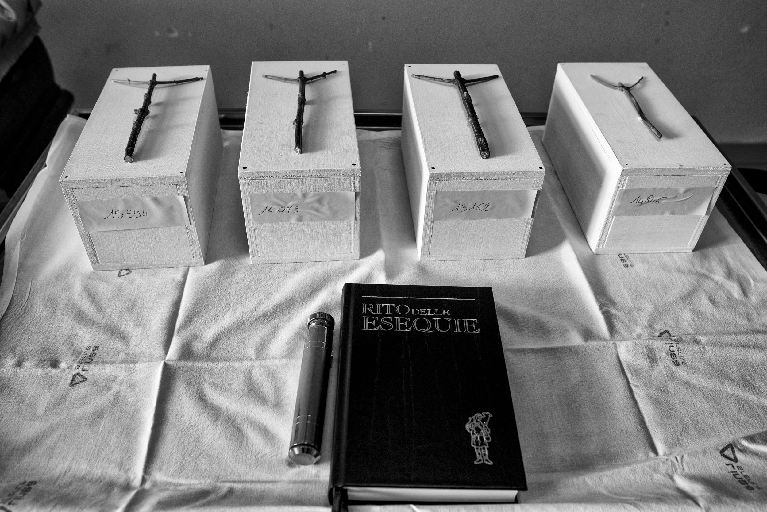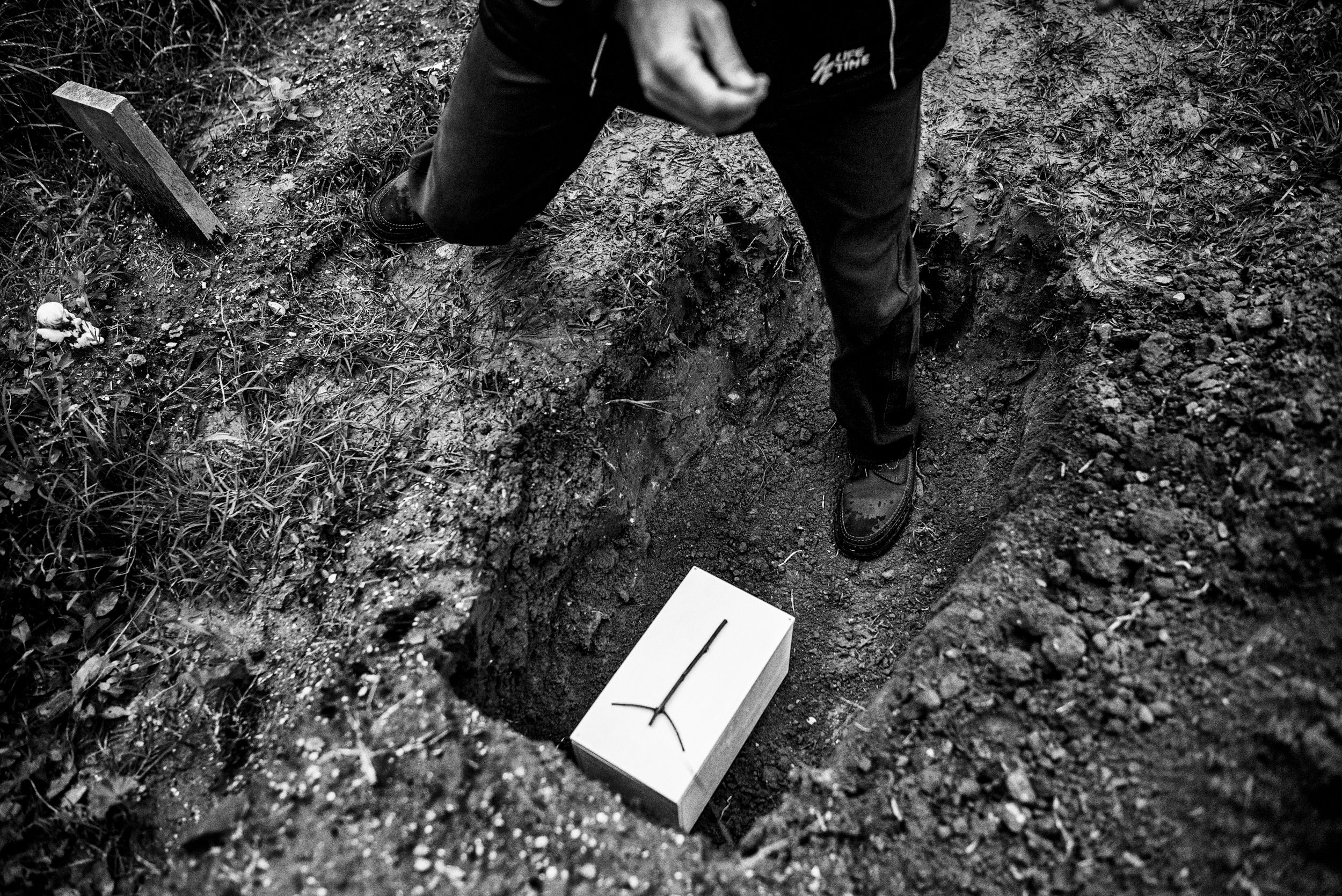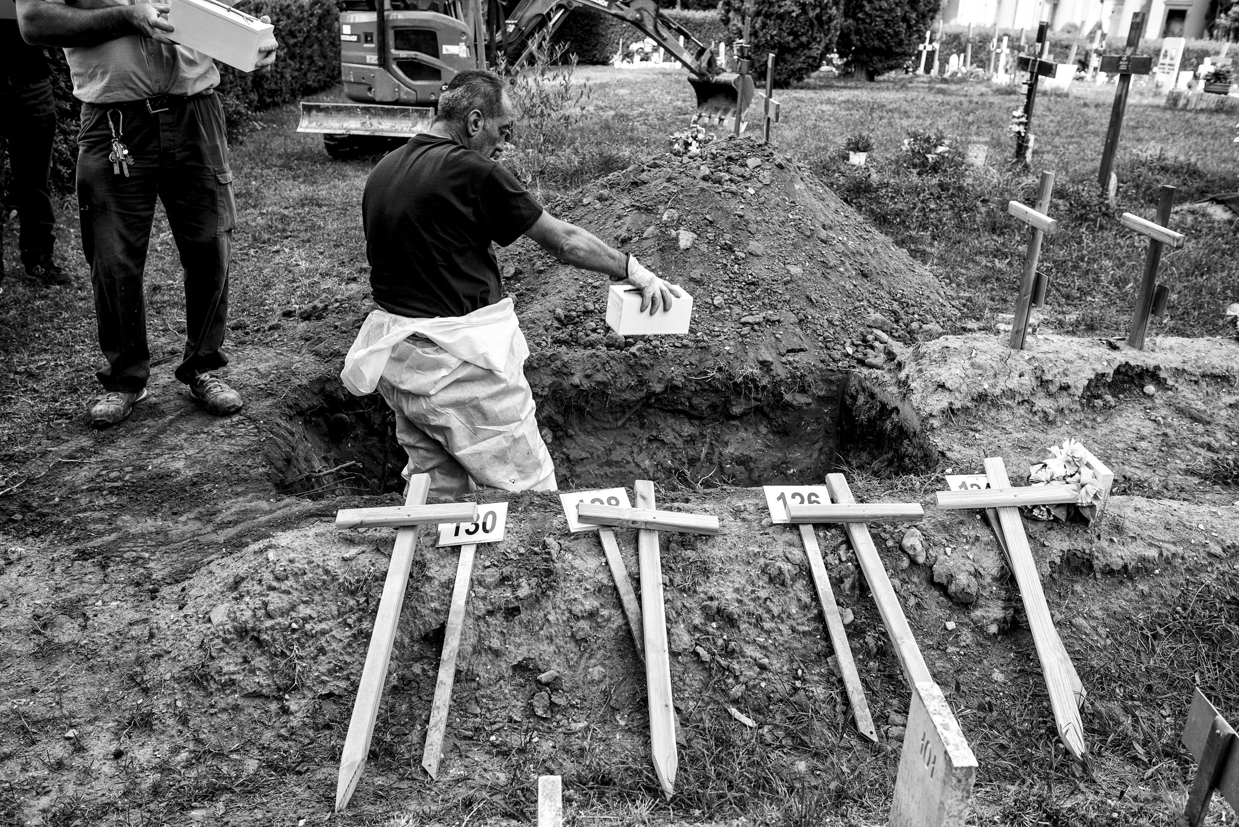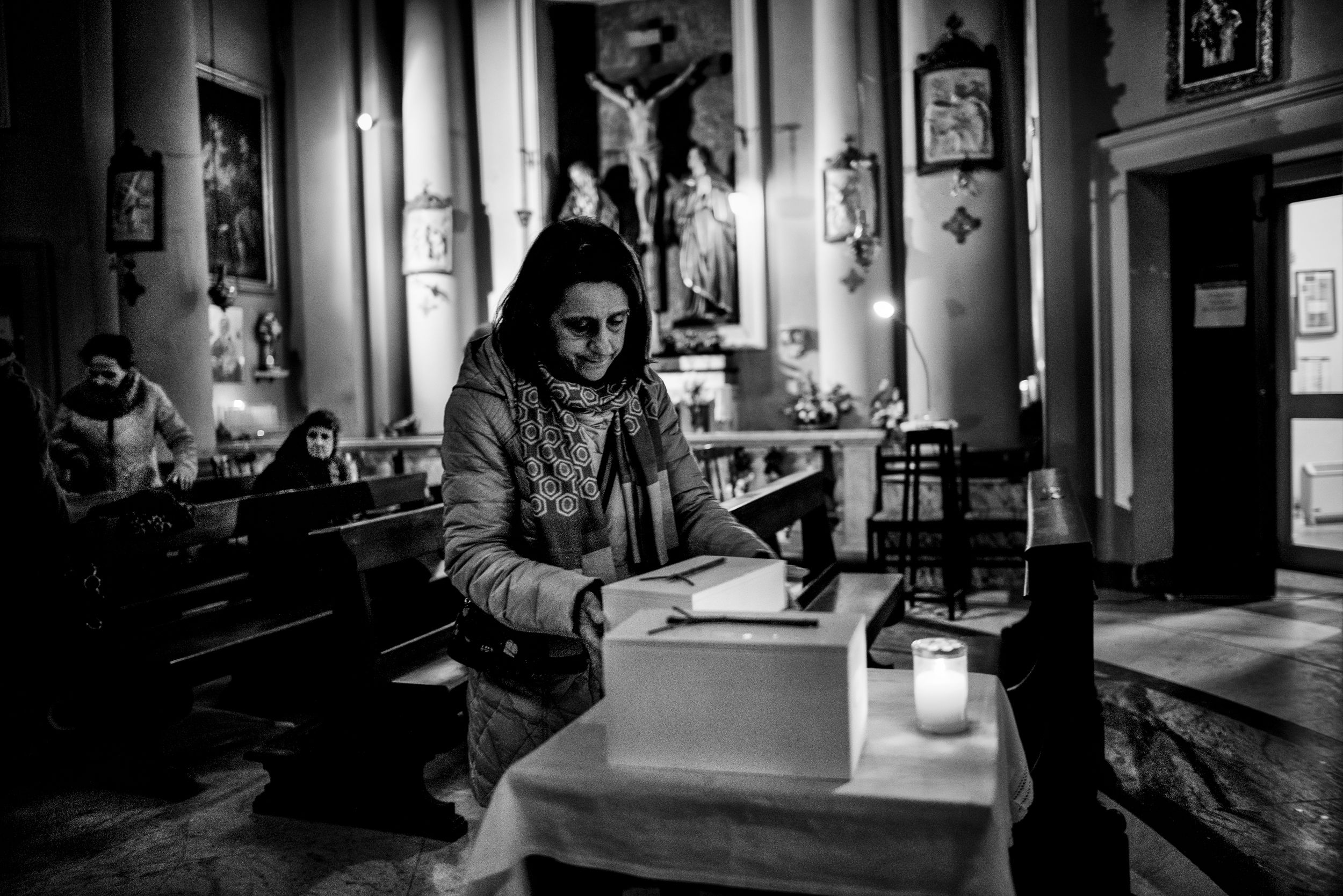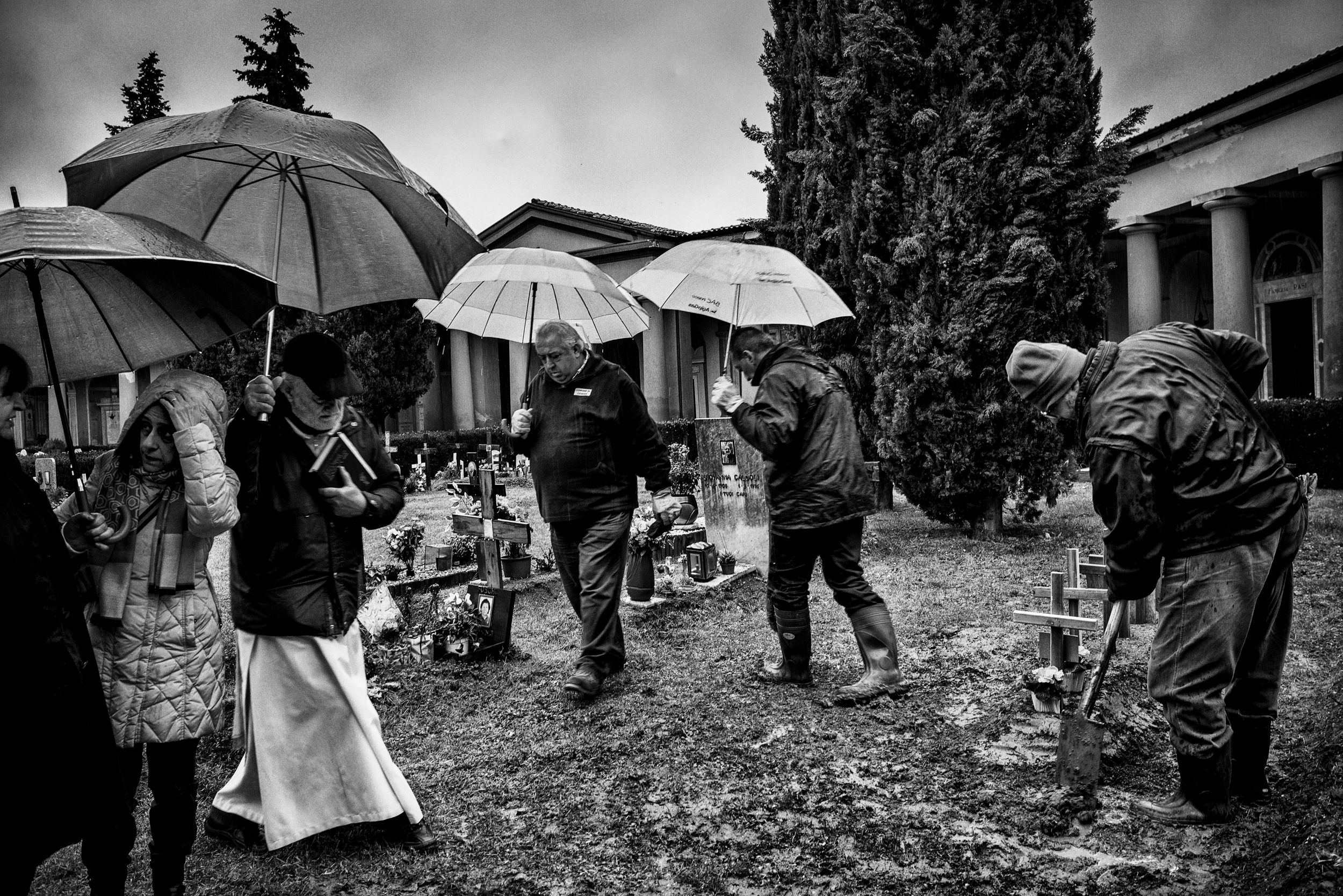 “Never Born” is a long-term project that tells about abortion fetuses voluntarily or spontaneously. In Italy, Law 194 of 1978 regulates the interruption of pregnancy and sets the deadline for voluntary interruption at 3 months of gestation. Before this term the “abortive products” are thrown into special hospital waste but there are Catholic anti-abortion associations that conclude conventions with some hospitals and they are concerned with giving a burial to these fetuses. Volunteers march behind the funeral procession and they celebrate the function in the communal cemetery chapel.