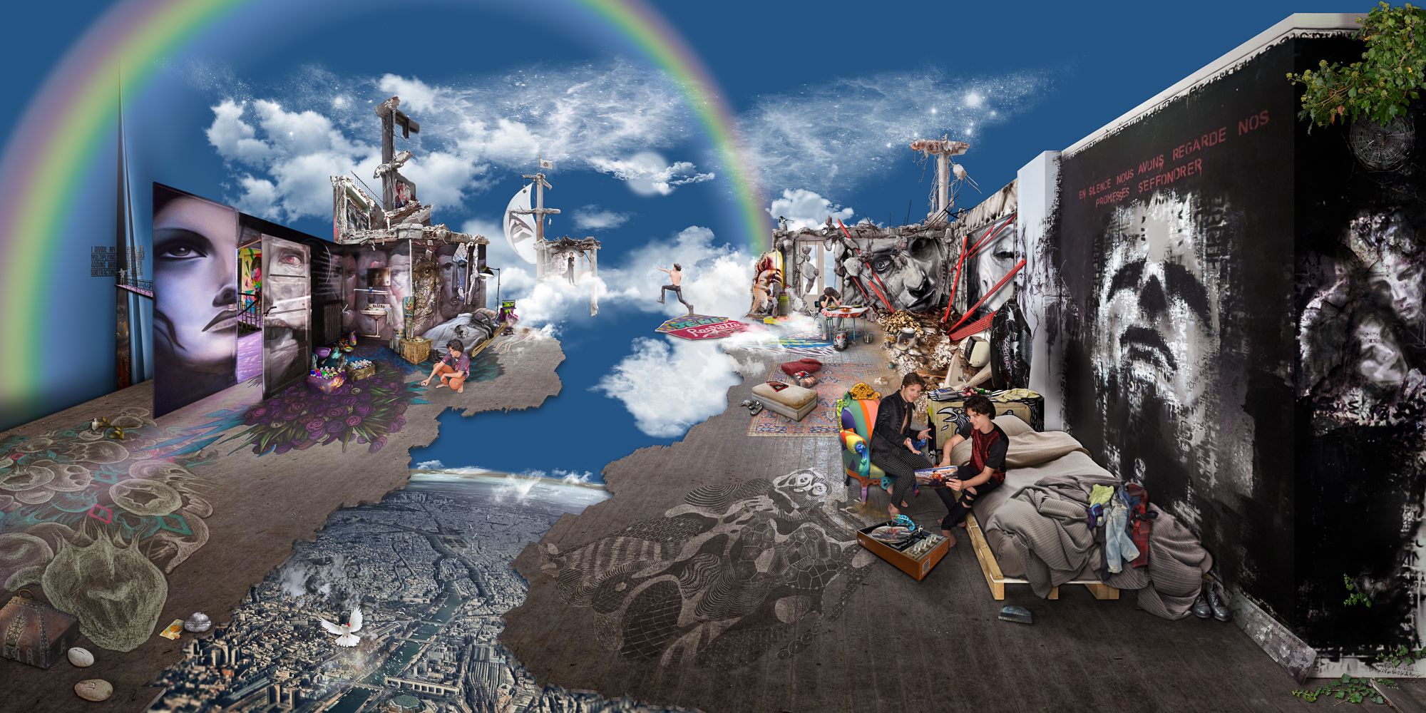 Birdy Tg is a French Visual Artist and Writer (novelist, philosophical essayist, poet). He is a Storyteller and a philosopher. Narrative, conceptual, philosophical, symbolic, allegorical, oneiric, his photography work mainly consists in very large format frescoes including thousands of individual photographs and requiring up to 2500 work hours per artwork, inviting the viewer to a true treasure hunt of evidences and clues through the numerous displayed details and codes, for taking his own stand on the underlying philosophical problematic Birdy Tg submits.