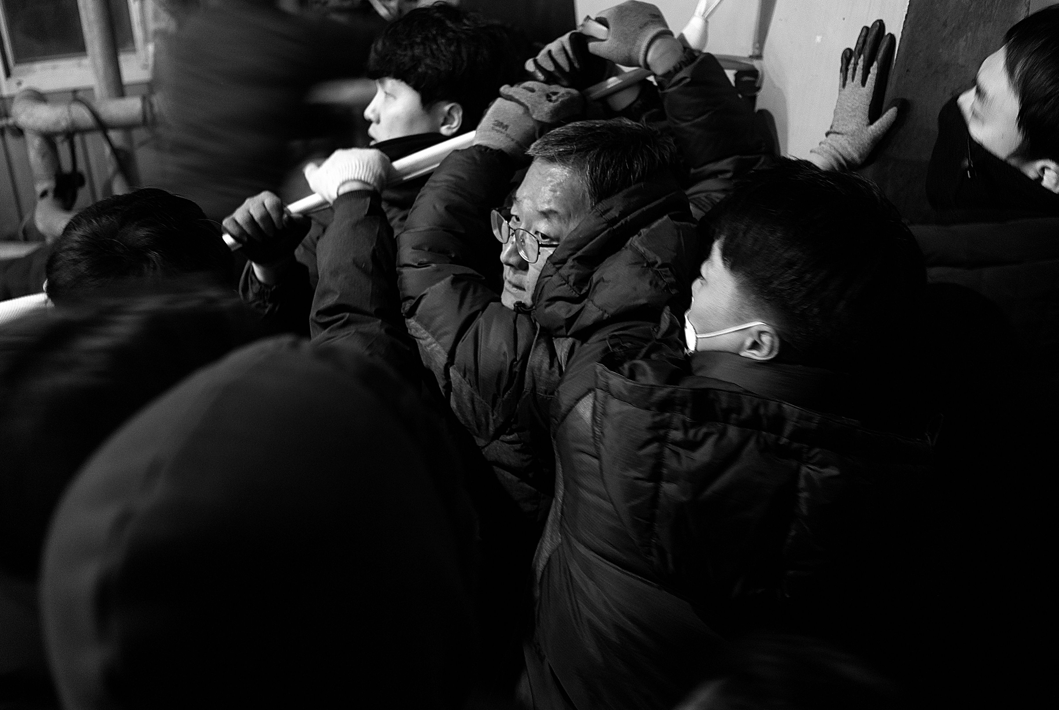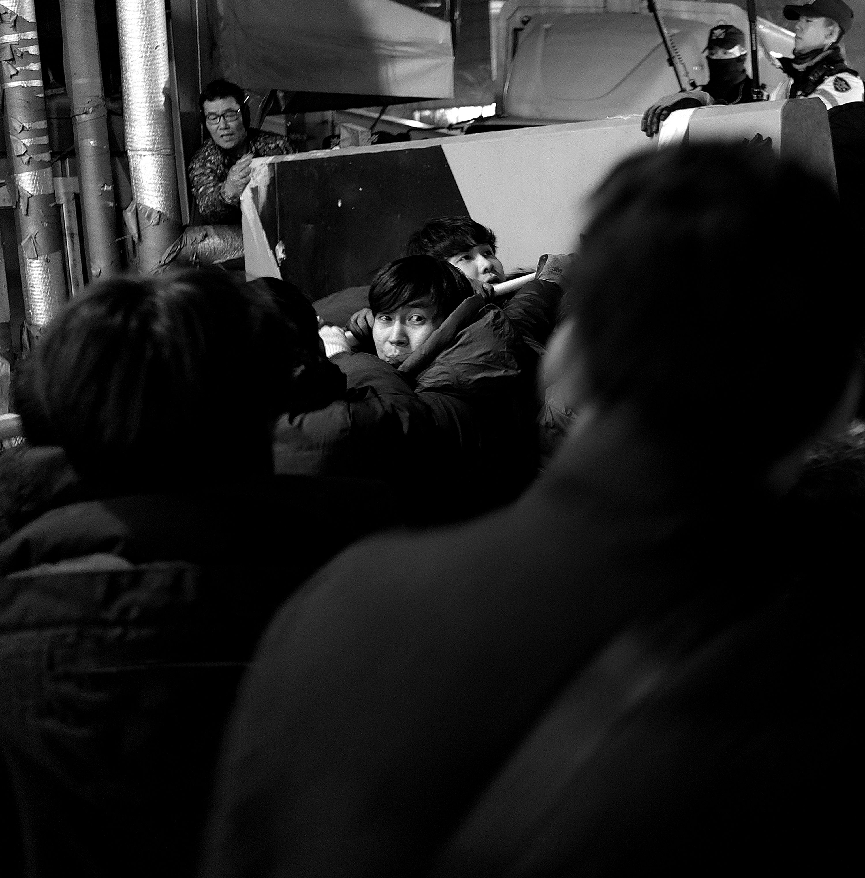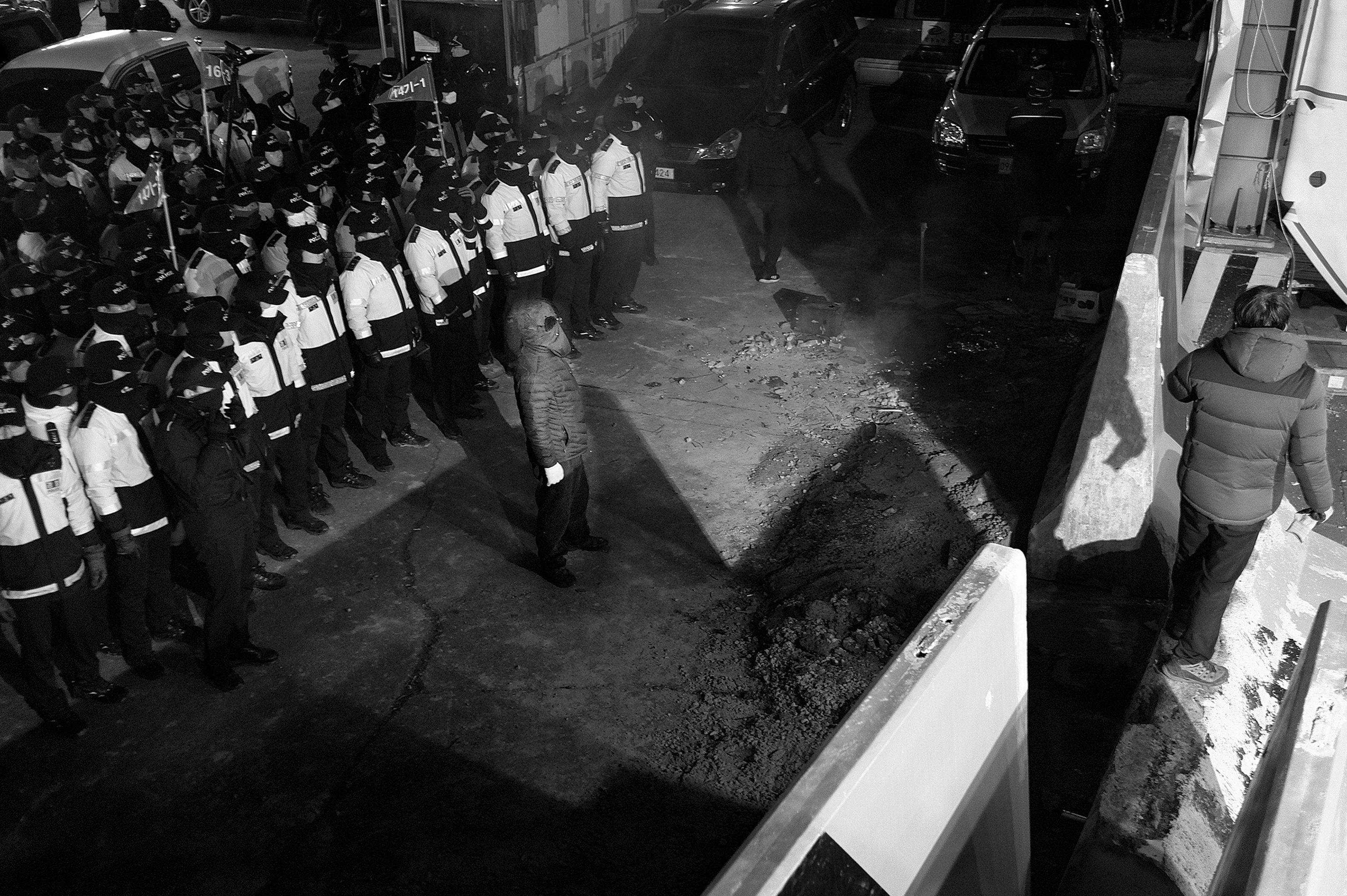 Korea's traditional Noh Liangjin Fisheries market is currently facing a confrontation between the fisheries side and the merchants. For the first time in 48 years, the light went out in the Noryangjin Fisheries market. The fisheries cooperative pushed ahead with the Danjeon water supply. And a two-meter-long concrete wall was built at the market entrance to block the entrance.Accordingly, merchants tried to record the scene of breaking down the concrete wall and the progress of the process.