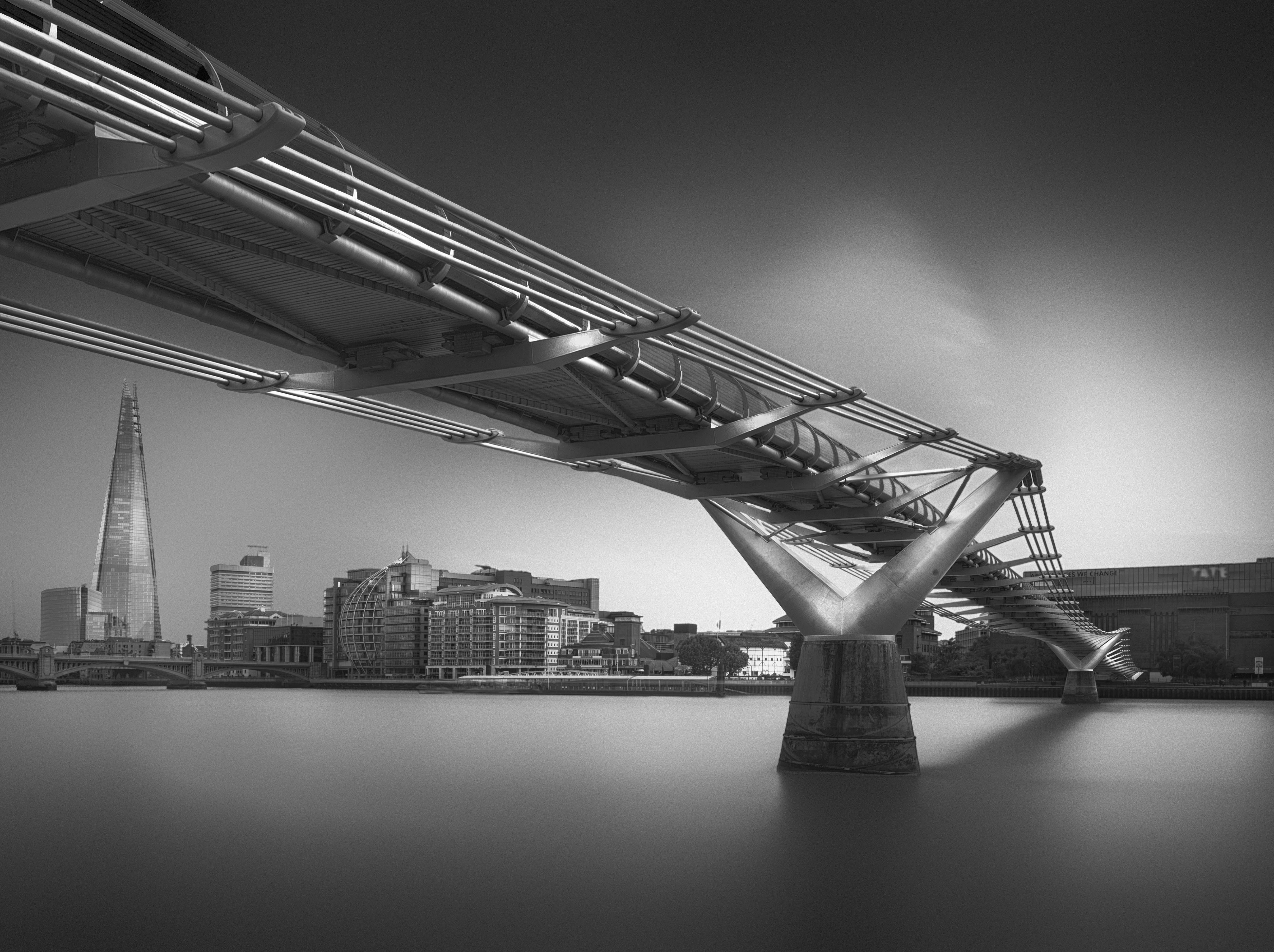 In my last visit to London, I decided to make a series to the beautiful London's bridges with very long exposure time and monochrome processing style, the goal was to make it as mysterious and serene as possible. The bridges are Millennium Bridge Tower bridge London bridge