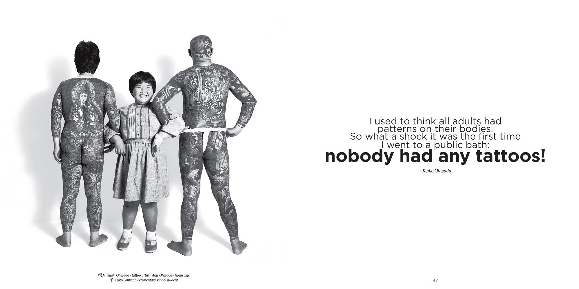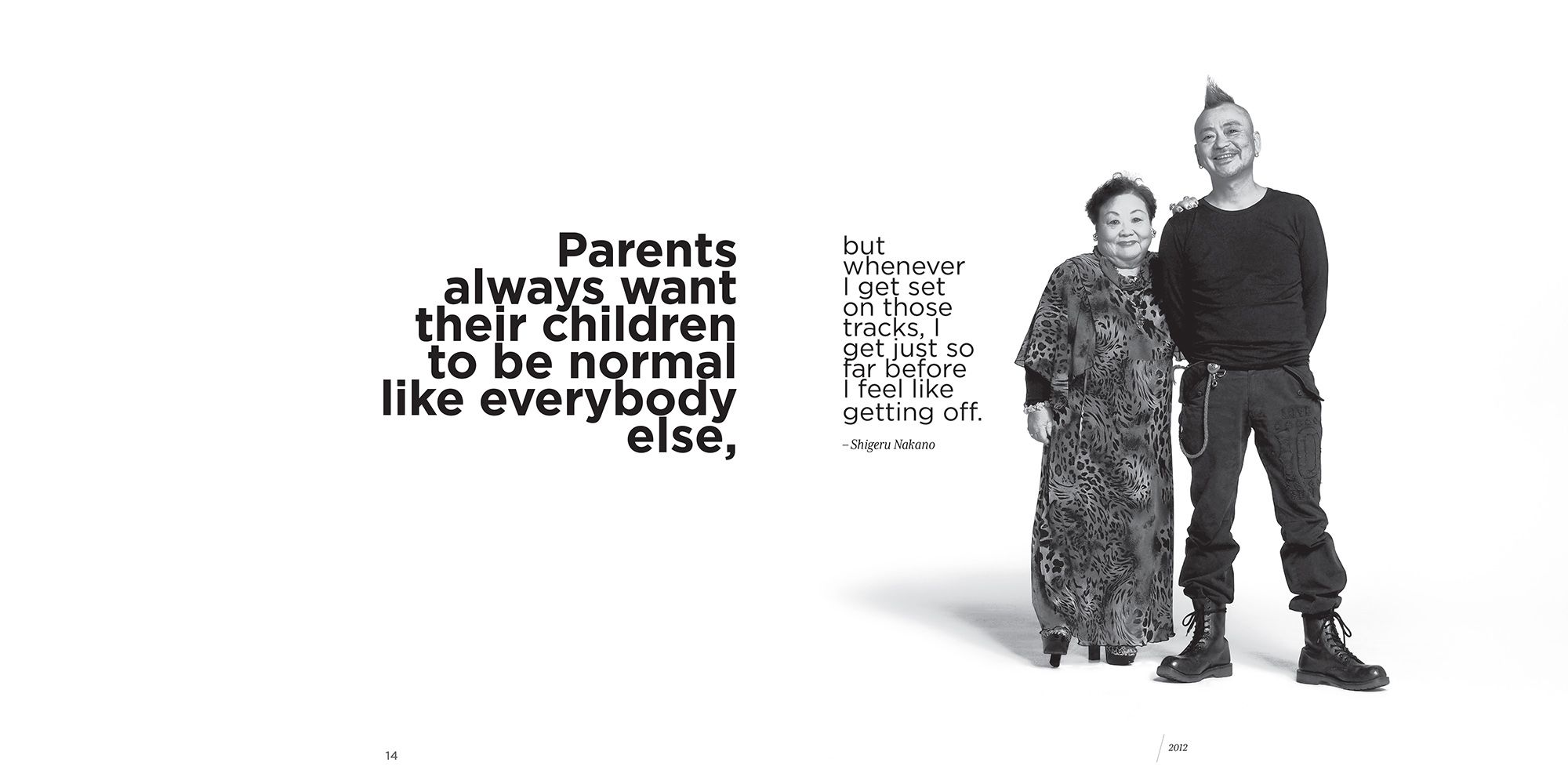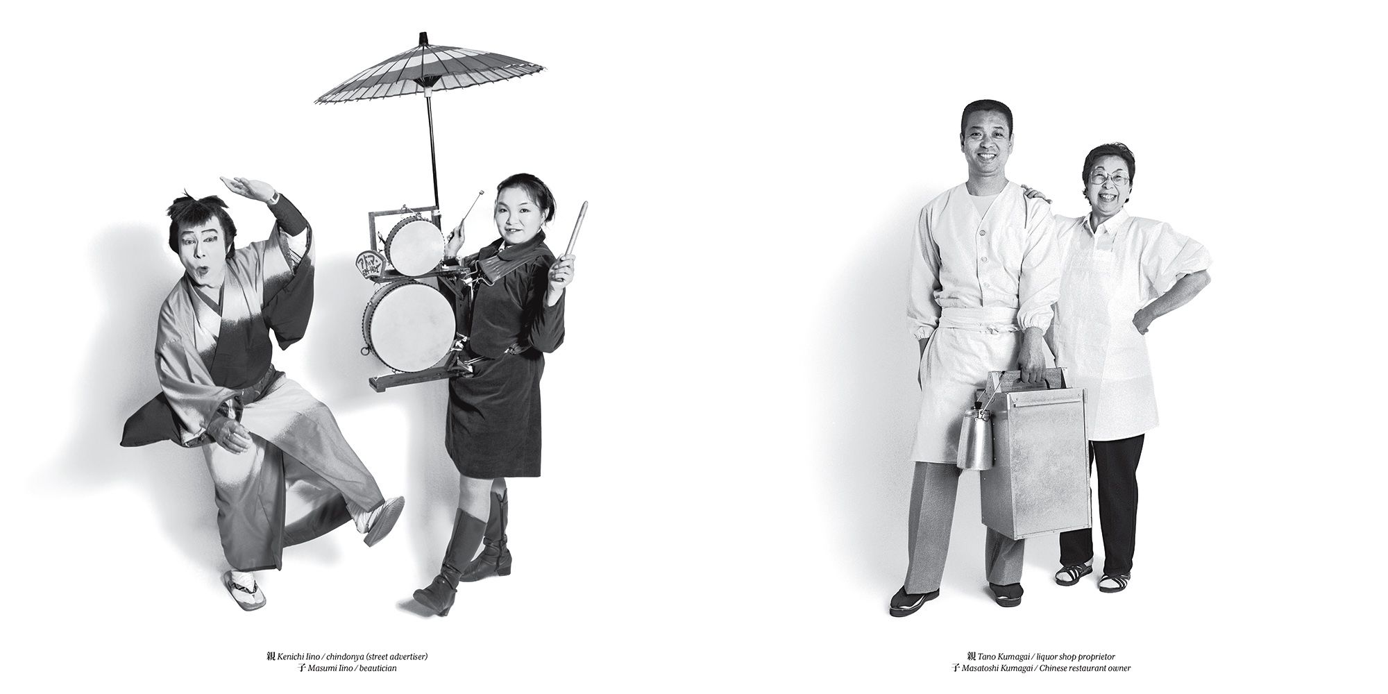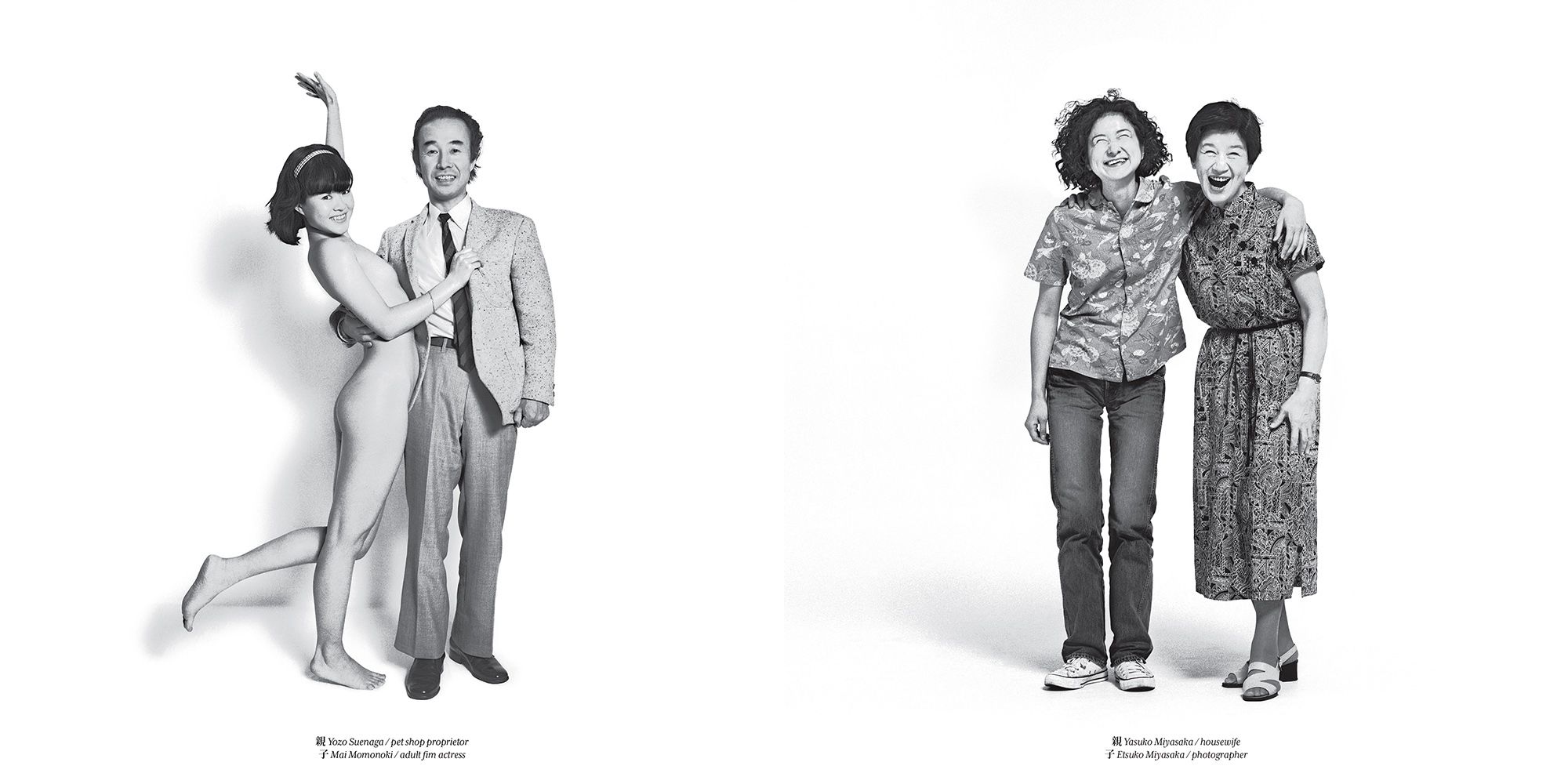 Oyako is the Japanese word for parent & child and the book's title. It started with an assignment to photograph punk musicians when I hit on the idea of photographing them with their parents. I thought it would be an amusing way to bring out the differences in lifestyles and fashions between the 2 generations. The pictures revealed so much, I continued exploring this theme as a way of looking at how their culture is adapting to change. The book covers a variety Japanese from musicians, sushi chefs, and monks, to sports figures, adult film actress, celebrities, and Hello Kitty & her mother.