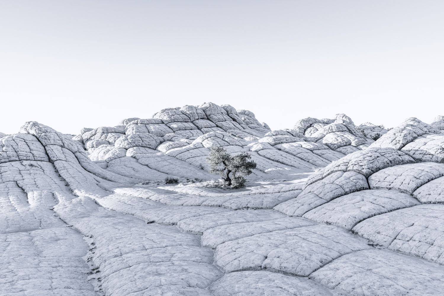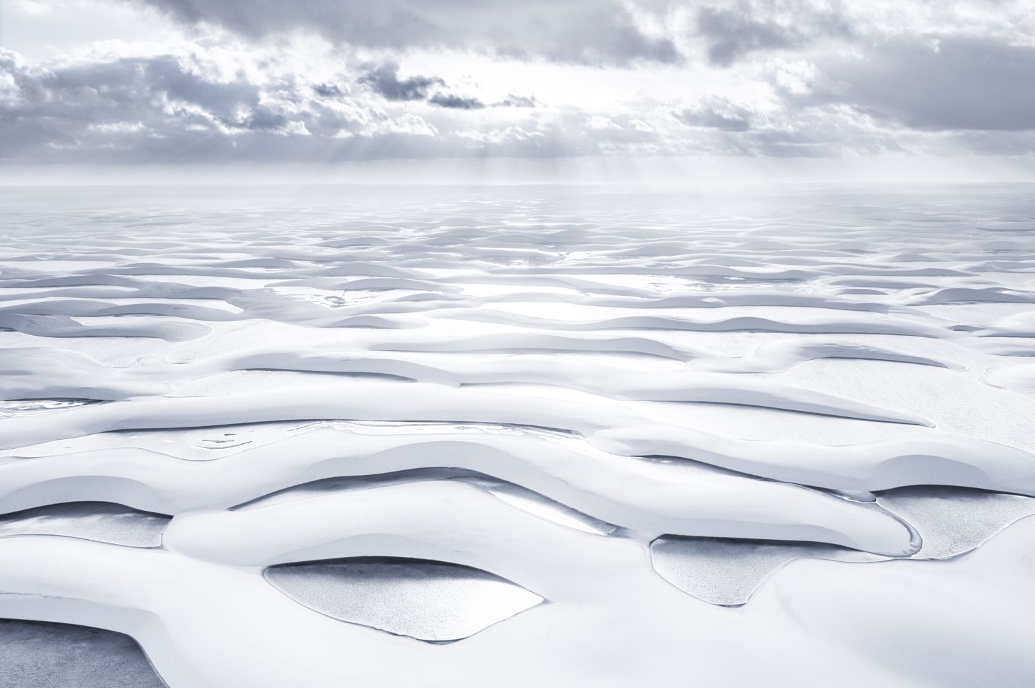 For almost two years Tom Jacobi travelled seven continents looking for archaic landscapes that either dominate by their brightness or open up to the light in unrivalled moments. The photographs for »Into the Light« symbolize that man, coming out of darkness, strives towards light in search for the meaning of life. Gazing upwards towards the sun fills us with the brightest of all colours: White. The light as the opposite of black, antagonistic to void and chaos. His partly abstract, surreal images of nature unfold their timeless power and offer space for contemplation.