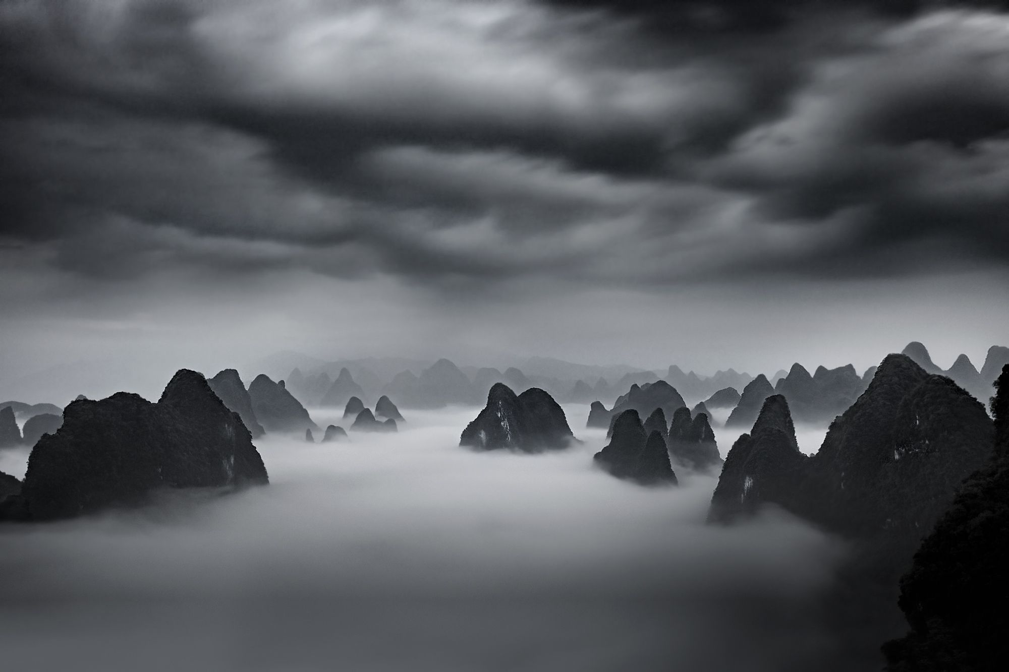 Overview of the karst mountains, in the Guangxi Province, China.