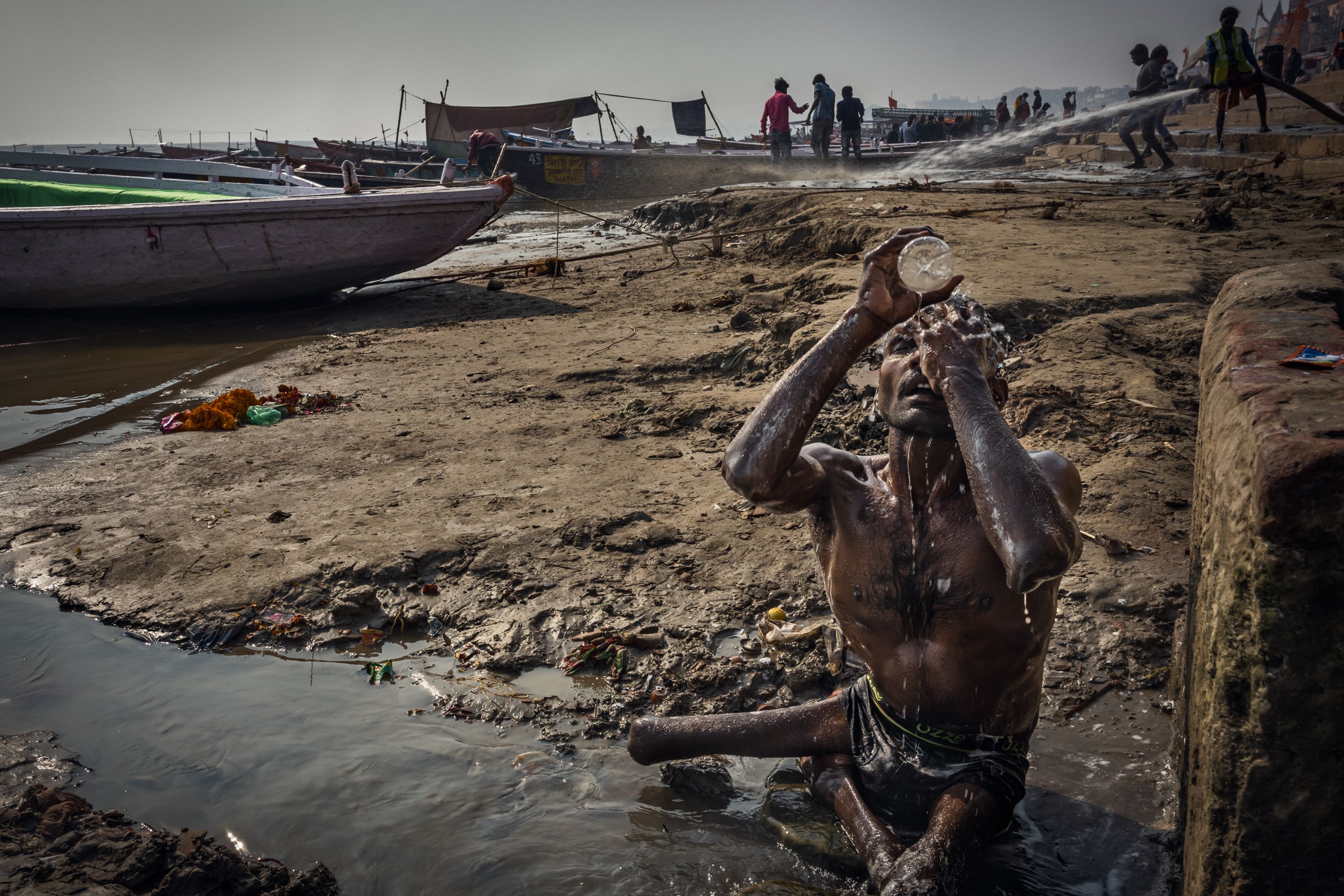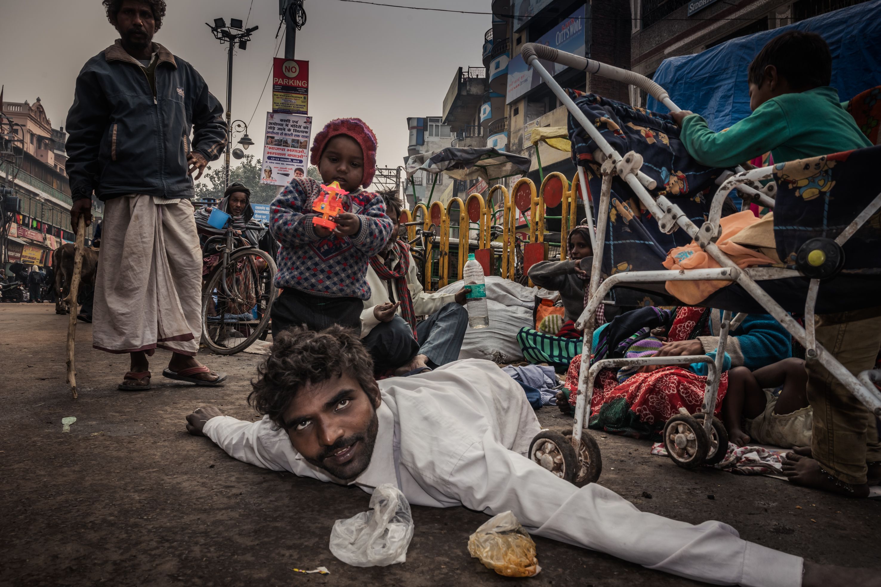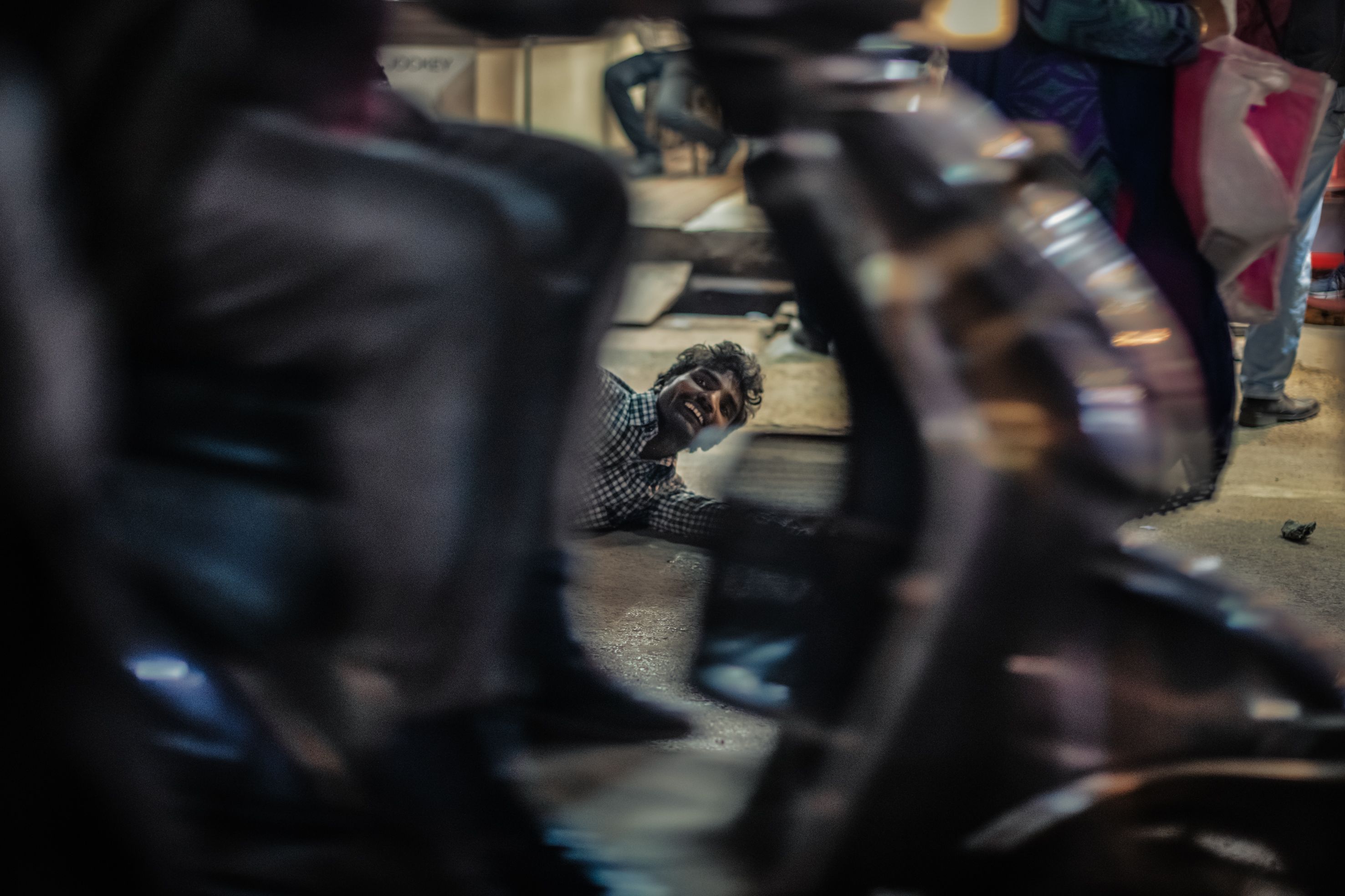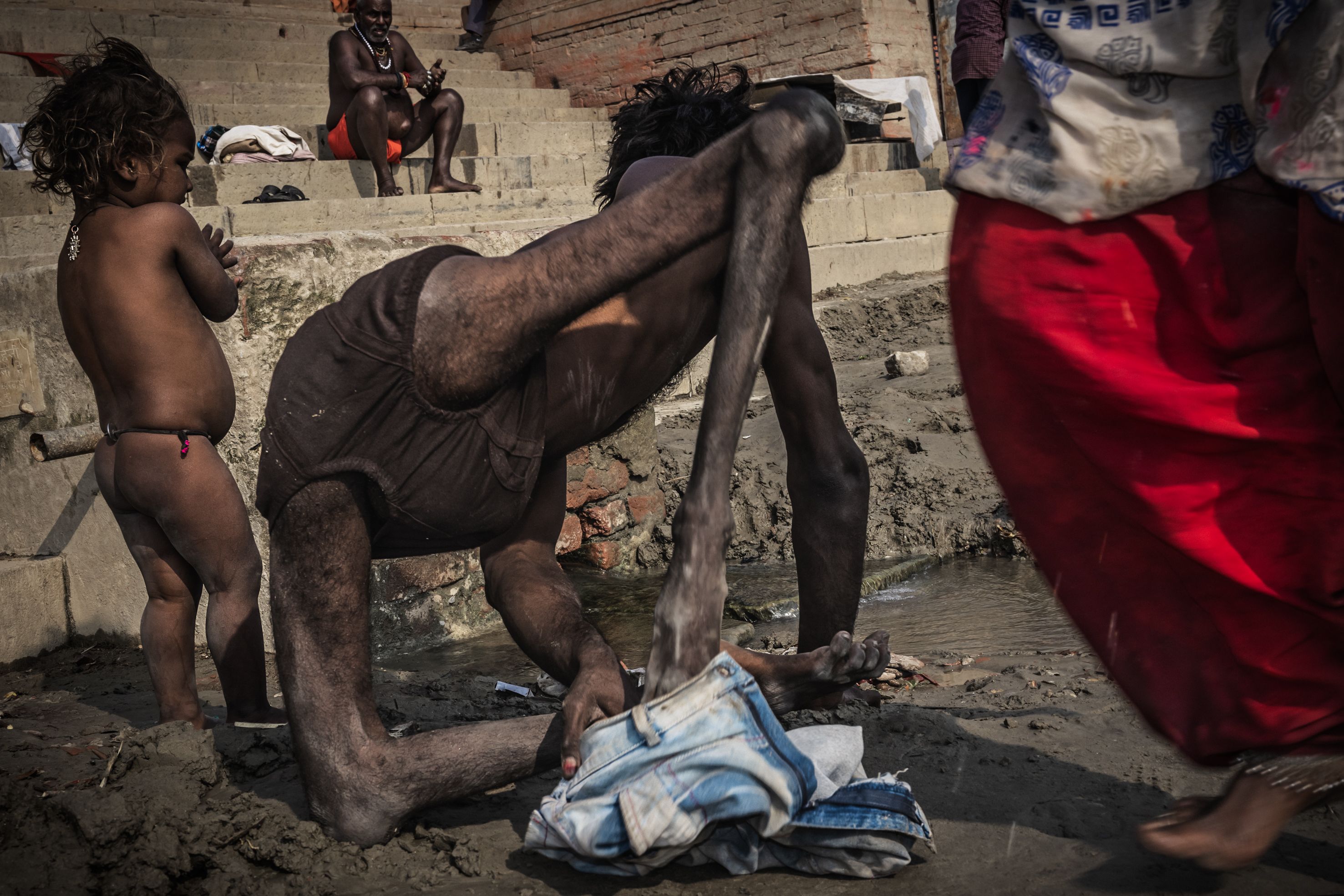 Polio sufferer, 30-year-old Rai Kumar lives with his wife Rekha and two children on the streets of Varanasi, India. Despite the painful handicap condition, he holds his spirit unexpectedly high. Rai keeps his family from the collected alms, and what is a great surprise, his beautiful smile attracts much more attention compared to other beggars which are widely seen in this holy city.